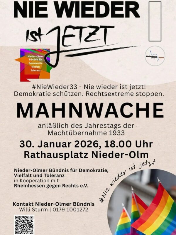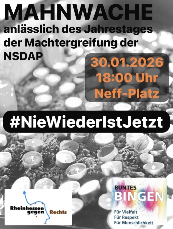 • 30.01.2026 18:00 Mahnwache in Bingen am Bürgermeister-Neff-Platz